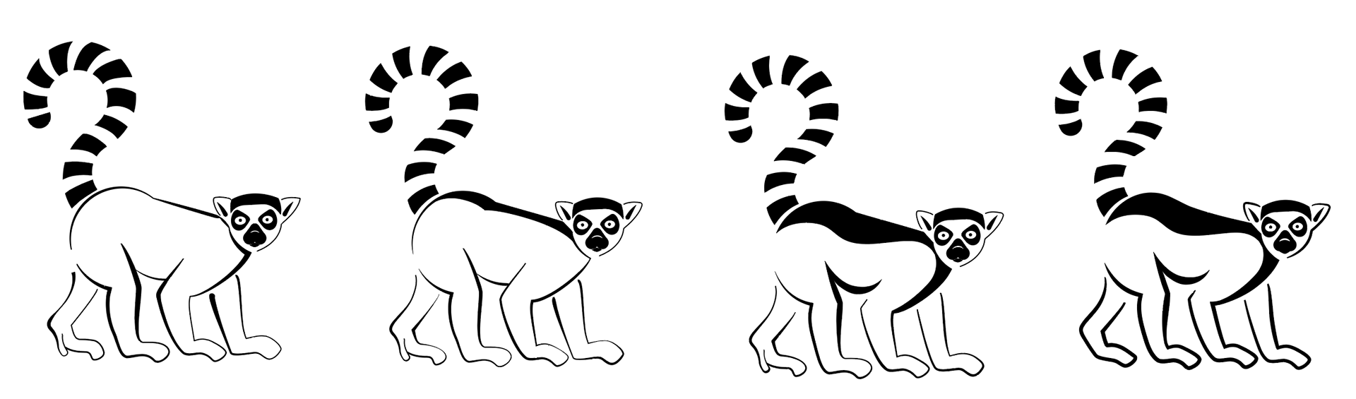Soft, varying line weights were used to show the lemur's playfulness and softness. In addition, the pose of the lemur looking directly at the viewer highlights its mischievousness.